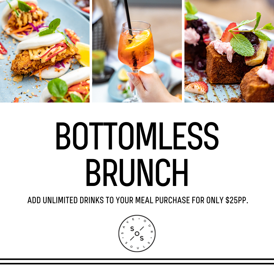 Our Bottomless Bundle is your lifeline: unlimited sips, epic bites, and zero regrets.
